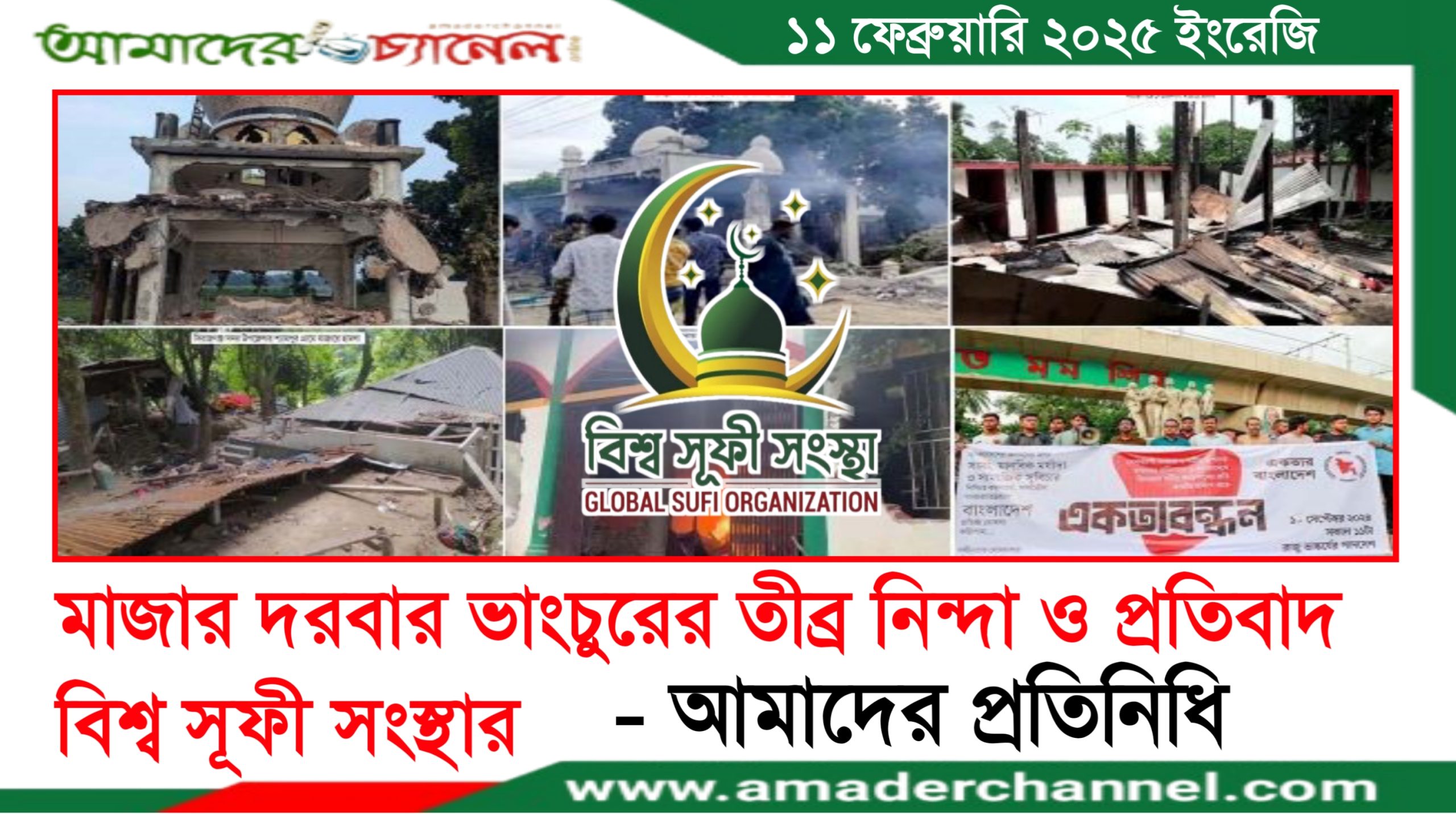 মাজার দরবার ভাংচুরের তীব্র নিন্দা ও প্রতিবাদ বিশ্ব সূফী সংস্থার - আমাদের প্রতিনিধি