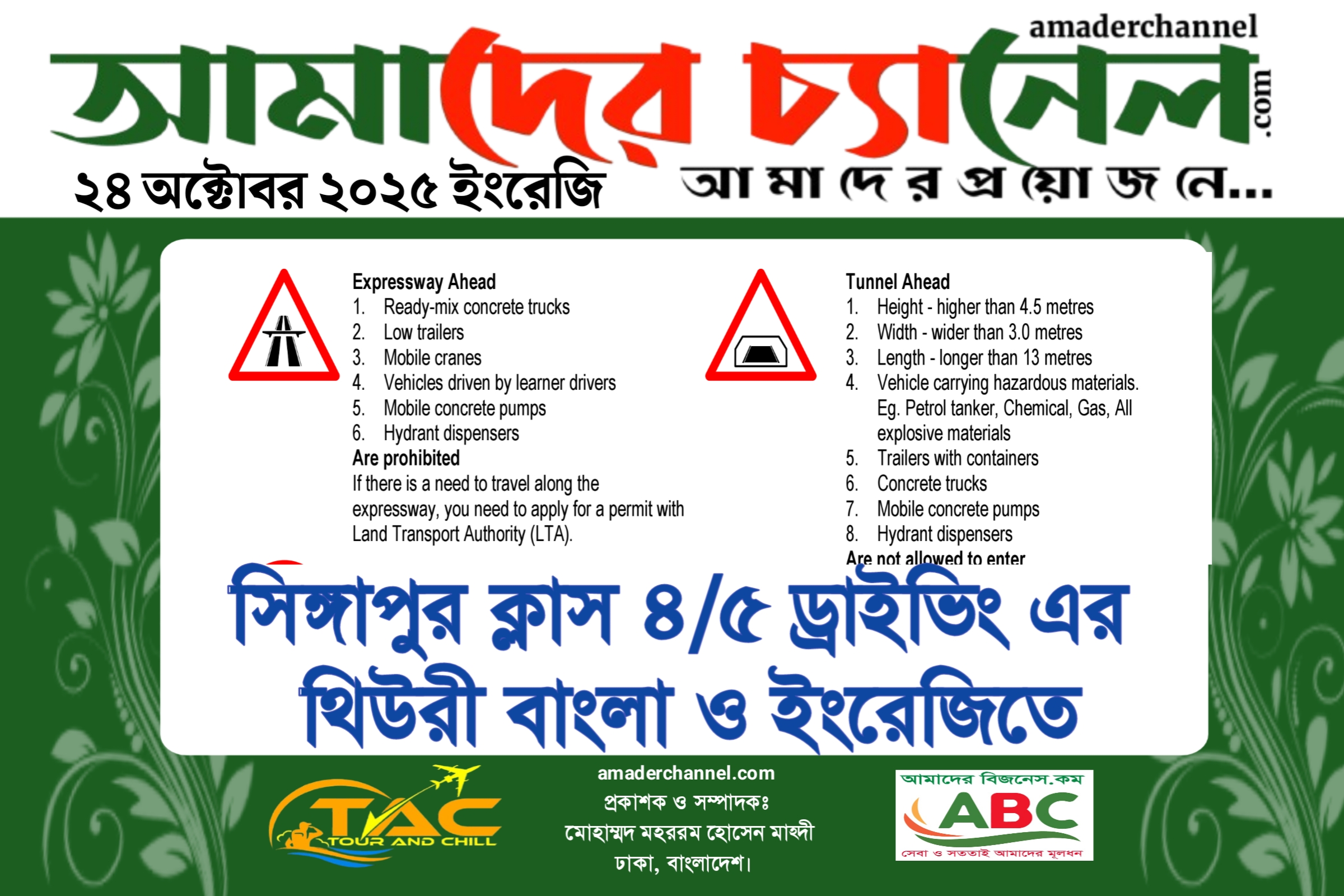 সিঙ্গাপুর ক্লাস ৪/৫ ড্রাইভিং এর থিউরী বাংলা ও ইংরেজিতে
