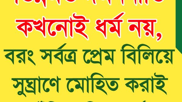 “ভিন্নমত দমননীতি কখনোই ধর্ম নই, বরং সর্বত্র প্রেম বিলিয়ে সুঘ্রানে মোহিত করাই খাঁটি শান্তির ধর্ম” অধম হোসেন