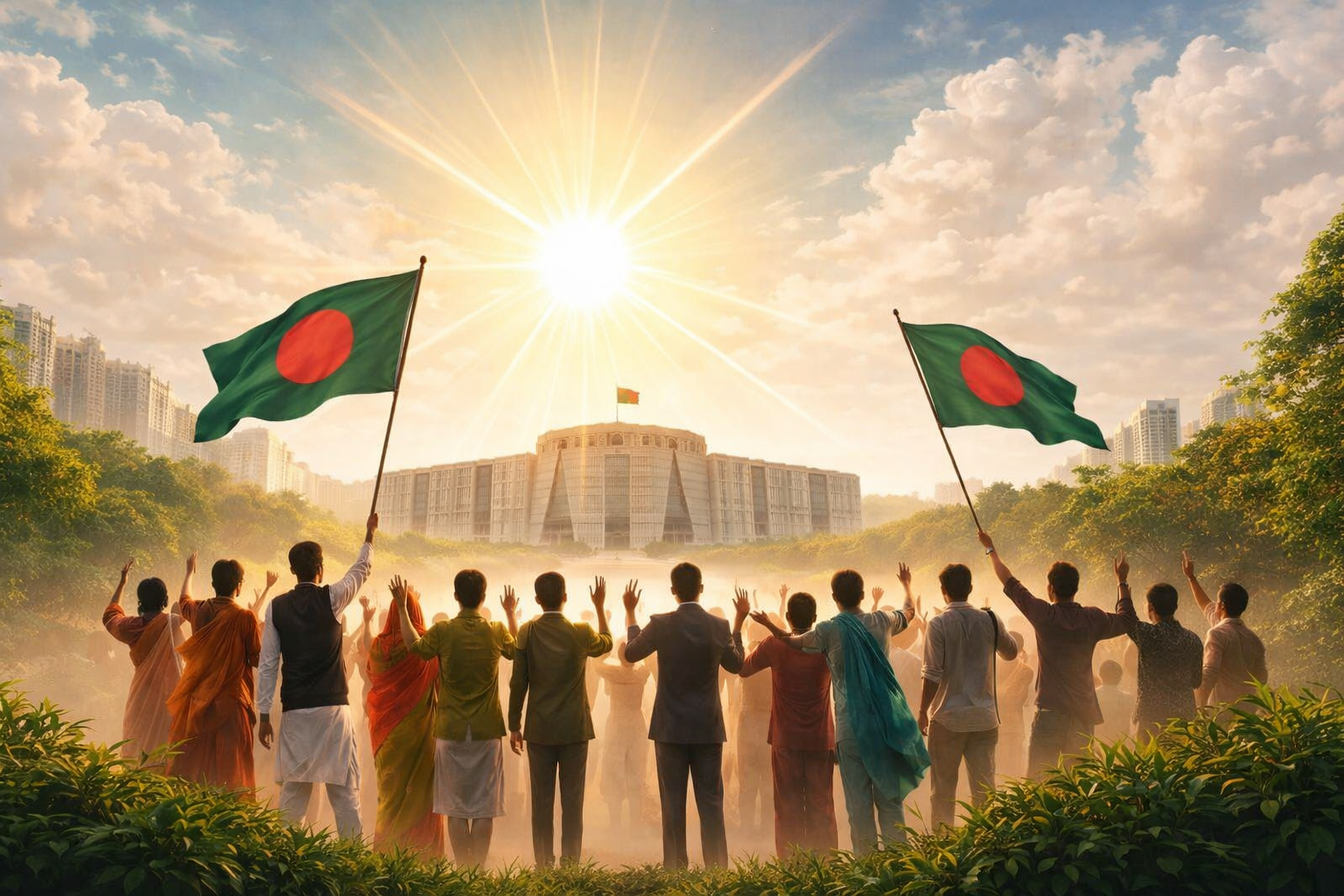 মাঘের সংযত প্রভাতে, যখন শীতের অন্তিম নিস্তব্ধতা আপন আলোকে ধীরে ধীরে মুড়ে নিচ্ছে, আর দিগন্তের ওপারে বসন্তের আগমনী রঙ মৃদু আভাসে জাগিয়ে তুলছে নবজীবনের সুর, ঠিক সেই ঐতিহাসিক সন্ধিক্ষণে আপনাদের কণ্ঠে ধ্বনিত হলো শপথের গুরুগম্ভীর উচ্চারণ। ঋতুপরিবর্তনের এই অনিবার্য অভিযাত্রার মতোই জাতিও আজ এক নব অধ্যায়ের প্রারম্ভে দাঁড়িয়ে—সংযম থেকে সৃজনের দিকে, প্রতীক্ষা থেকে প্রত্যয়ের দিকে, সম্ভাবনা থেকে বাস্তবতার দিকে।
