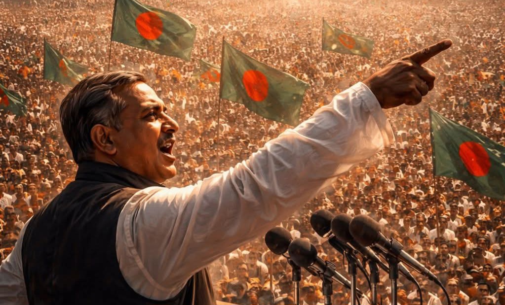 সেদিন রেসকোর্সের মঞ্চ থেকে কোনো সাধারণ বক্তৃতা বের হয়নি, বেরিয়েছিল এক কালজয়ী মানচিত্র। সেই তর্জনী কেবল আকাশকে শাসন করেনি, শাসন করেছিল পরাধীনতার নিয়তিকে। আজ ৫৩ বছর পরও—২০২৬ সালে দাঁড়িয়ে—সেই কণ্ঠস্বর আমাদের ধমনিতে লাভার মতো প্রবাহিত হয়; আজও শিখিয়ে দিয়ে যায়—বাঙালিকে দবায়ে রাখা যায় না।