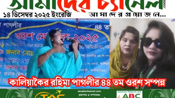 কালিয়াকৈর রহিমা পাগলীর ৪৪ তম ওরশ সম্পন্ন কালিয়াকৈর (গাজীপুর) প্রতিনিধিঃ গাজীপুরের কালিয়াকৈর মাদ্রাসা পাড়াস্থ রহিমা পাগলীর ৪৪ তম ওরশ মাহফিল সম্পন্ন হয়েছে। স্থানীয় সূত্র জানায়, শনিবার দিবাগত রাতে উপজেলার read more